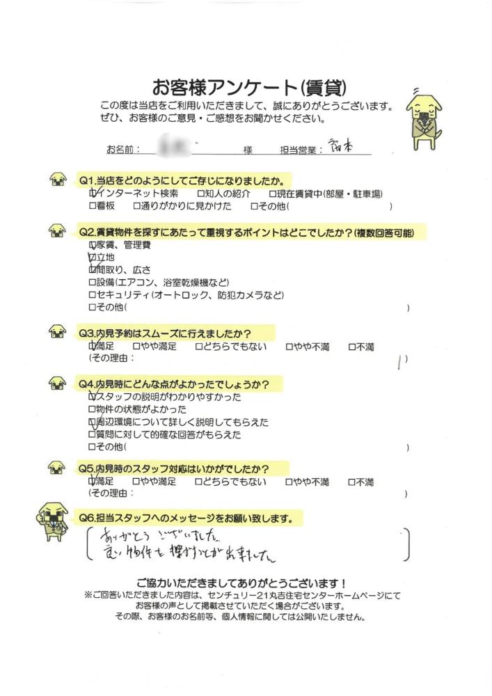 この度はご契約いただき誠にありがとうございました。ご希望に合う物件をご紹介でき、私どもも大変うれしく存じます。今後とも宜しくお願い致します。