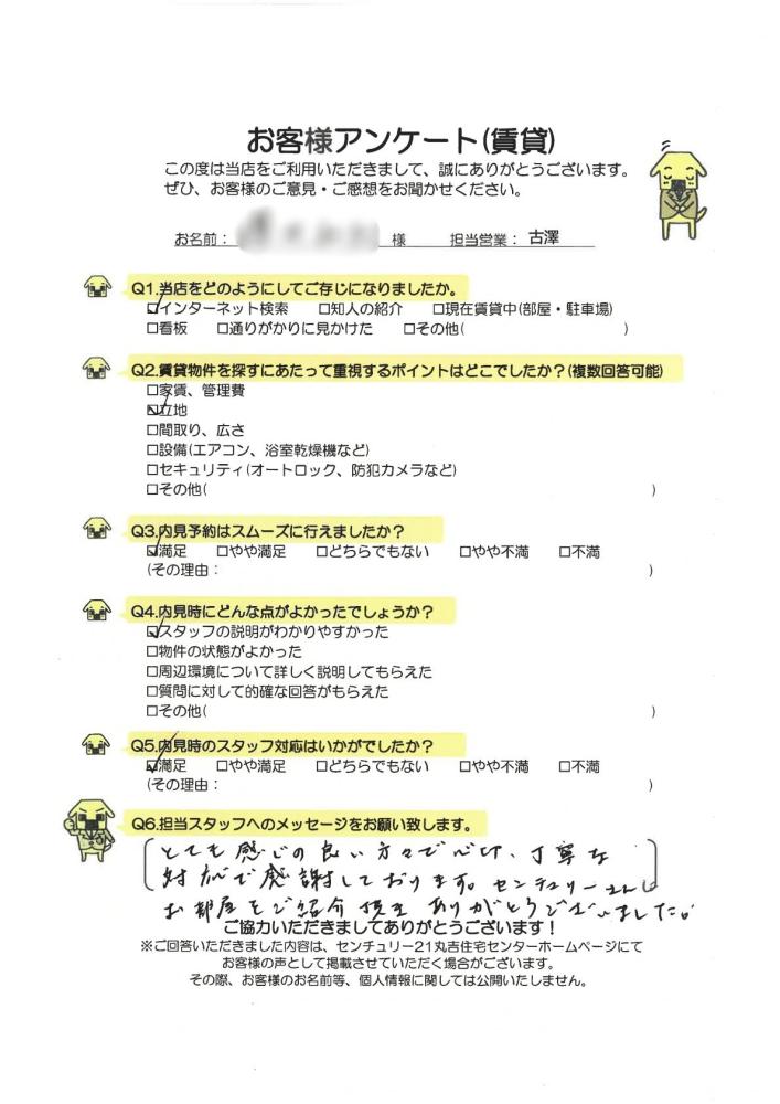 センチュリーさんにお部屋をご紹介いただきありがとうございました。